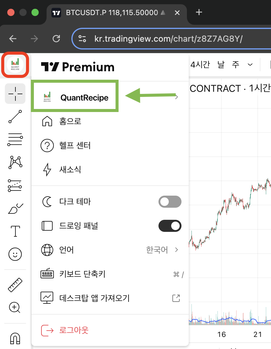 (퀀트레시피 패키지 기능들을 구현하는데는 프로 버전이면 충분하지만 프리미엄 버전으로 가면 백테스트하는 과거 캔들수가 두배가 되고 알러트가 2달후에도 종료되지 않아서 2달에 한번 재시작 버튼을 누를 필요없는 편리함이 있습니다.)